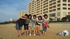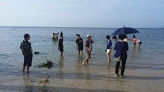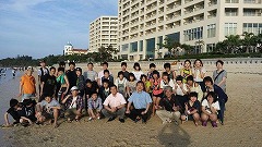 ホテル到着後、ホテルの前のプライベートビーチで足湯ならぬ足海?で水遊びと記念撮影をしました。