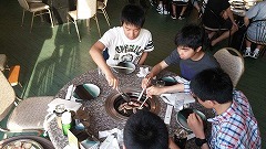 ここまで元気に過ごしていた子どもたち。夕食後の食べ過ぎがちょっと心配です・・・。