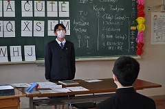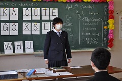 そして、こちらは1年生の英語の授業。英語で自己紹介をしました。自分の好きなスポーツ、趣味などを1人ひとりしっかりとした英語で発表していました。