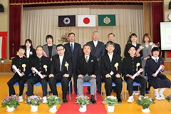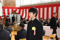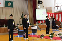 本年度の卒業生は4名。式には1人ひとりの生徒が、3年間のいろいろな出来事や感動を胸に、祝辞や送辞、答辞をかみしめながら、義務教育の集大成にふさわしいしっかりとした態度で式に臨みました。