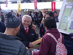 まずは、開会式で、特別にPRの時間を設けていただき、会場に集まったみなさんに「ひしストラップ」開発の経緯・御利益等について披露しました。(写真左)