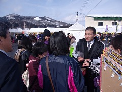なんと、町長さんをはじめ、衆議院議員さんや、来賓としておいでになっていた元栃東関の玉ノ井親方にも声をかけ、2個、3個と買っていただきました。この取り組みは、翌日の民報新聞にも大きく掲載されましたが、この記事は会津版ではなく、全県版であったことにも驚きました。