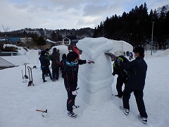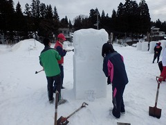 2月7日(土)~8日(日)にかけて「道の駅やないづ」等を会場として行われる「やないづ冬まつり」に向け、4日(水)午後より、西山中1・2年生と柳津中2年生が合同で雪像製作を行いました。