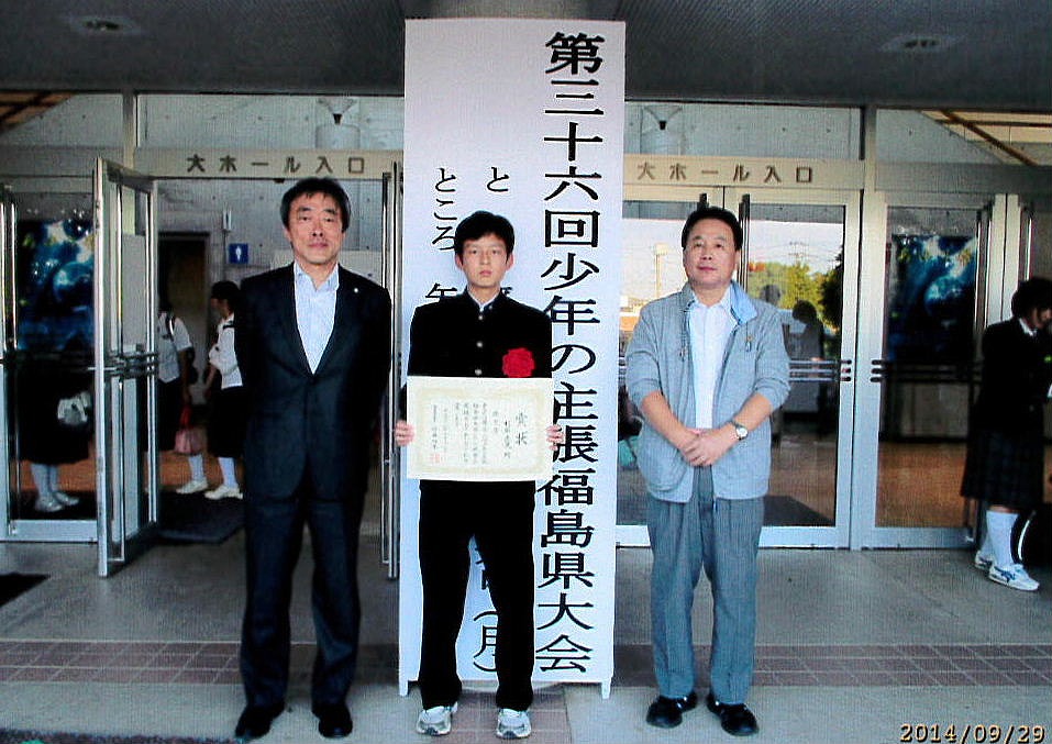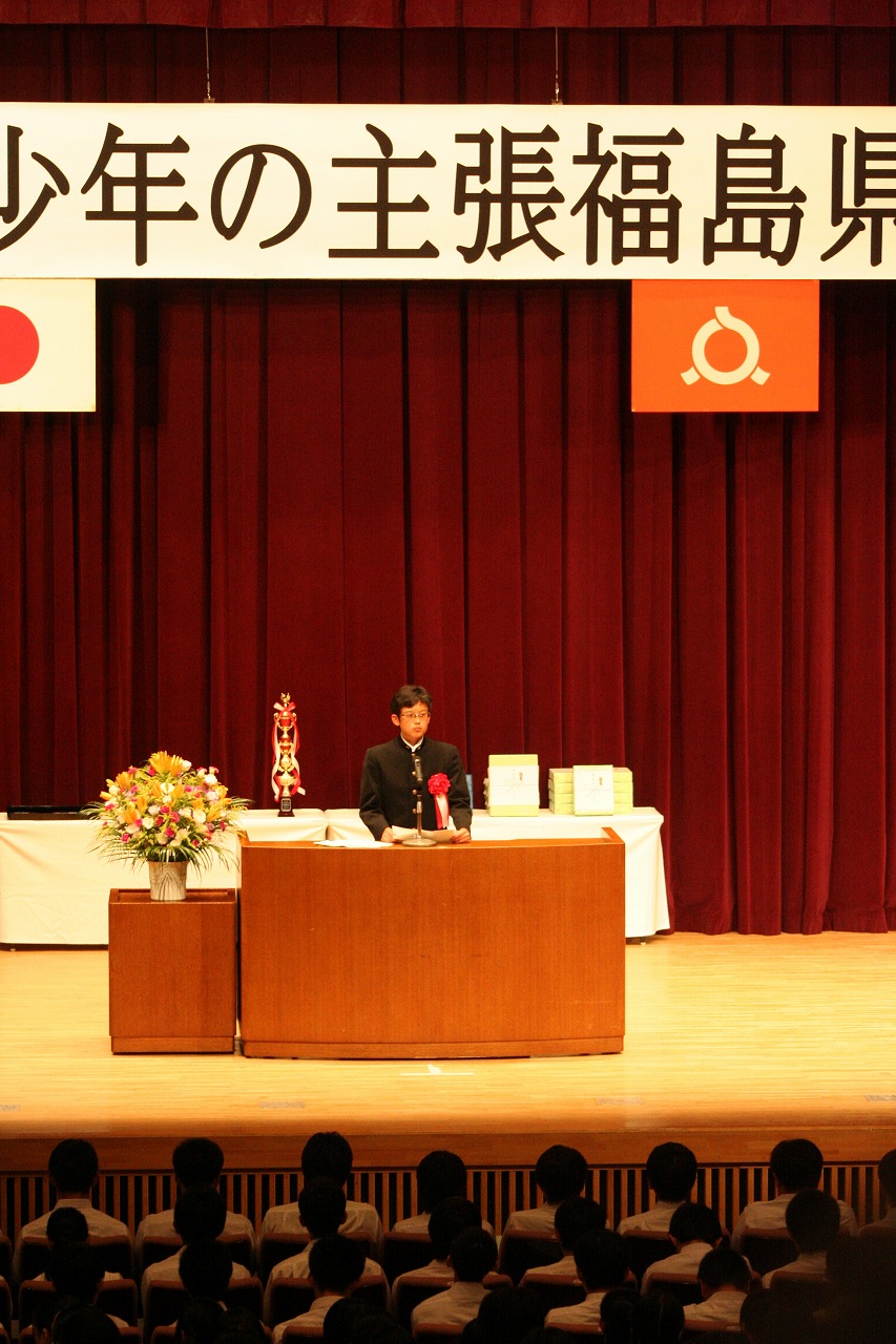 この大会に、西山中学校からも3年生の 杉原正晃くん が参加し、「残したい故郷」と題し、柳津町の風景、文化、人々の温かさなどのすばらしさを取り上げながら、これからの故郷について自分の考えを発表しました。