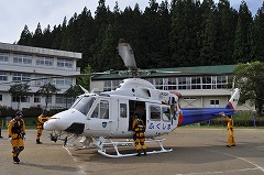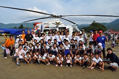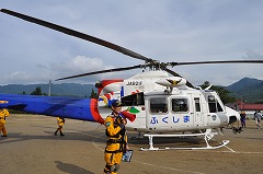 当日は天候にも恵まれ、県消防防災ヘリの救助訓練展示飛行、離着陸も行われました。