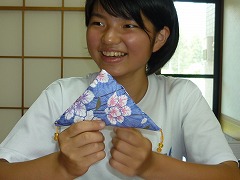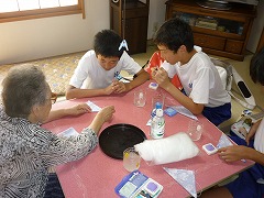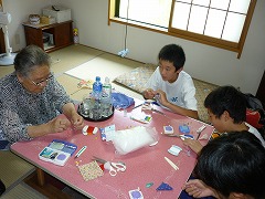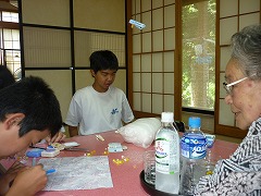 夏休みを利用し、生徒が地域の老人と民芸品「ひし」づくりを通して交流を深めました。