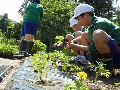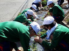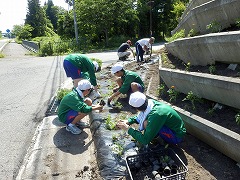 その活動を西山中学生が体験させていただく形で、第1回は4月30日に「種まき」、第2回は6月10日に「苗のポットへの植え替え」を行ってきました。そして、今回はいよいよ沿道の花壇への地植えとなりました。