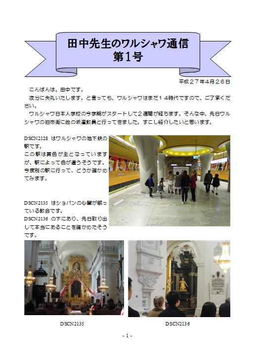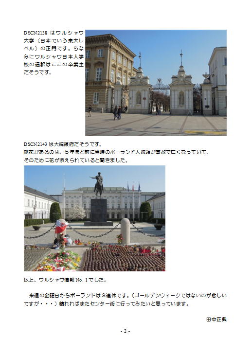 2015年5月26日 10時09分ワルシャワに赴任した田中先生から通信が届いています。せっかくの機会なので、この場にアップします。
