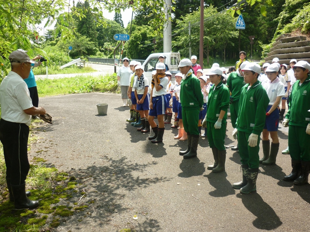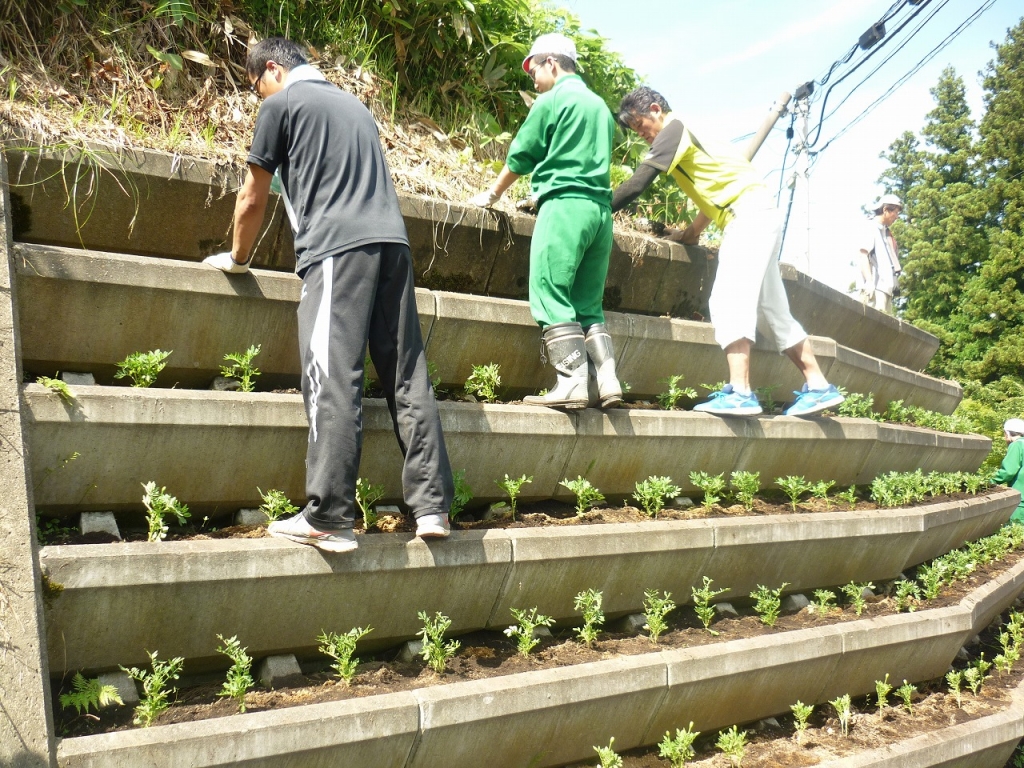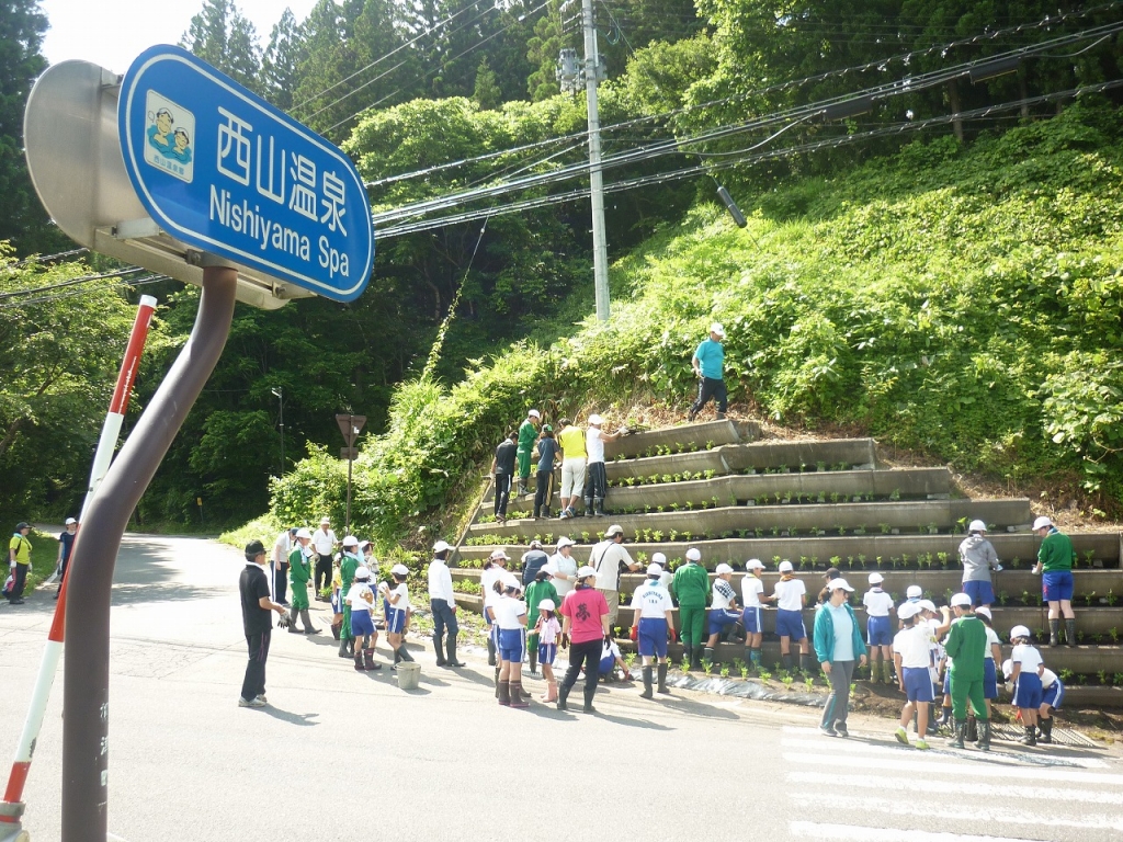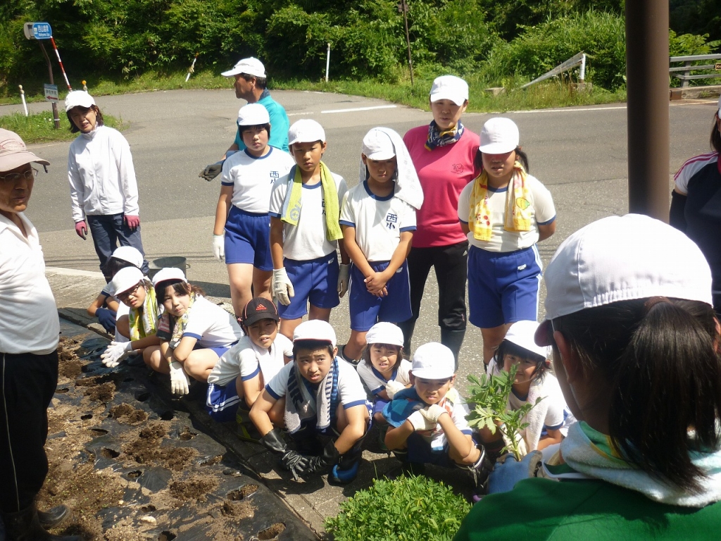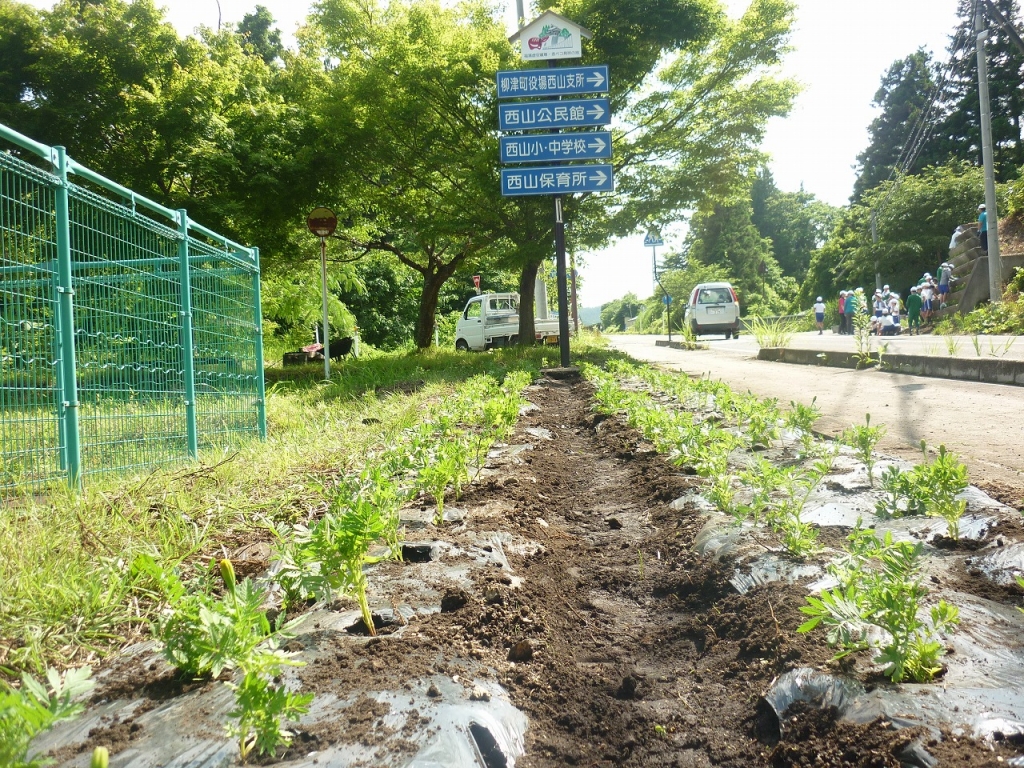 2017年7月7日 00時10分隣接する西山小学校と合同で、ロードフラワーを行いました。学校近くの県道交差点に花の苗を植え、道行く方々に見ていただこうと平成17年から始まったものです。