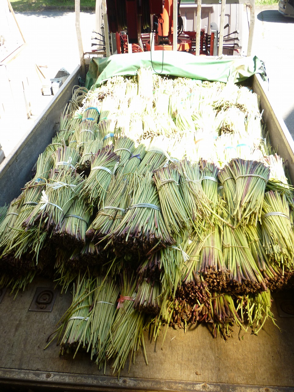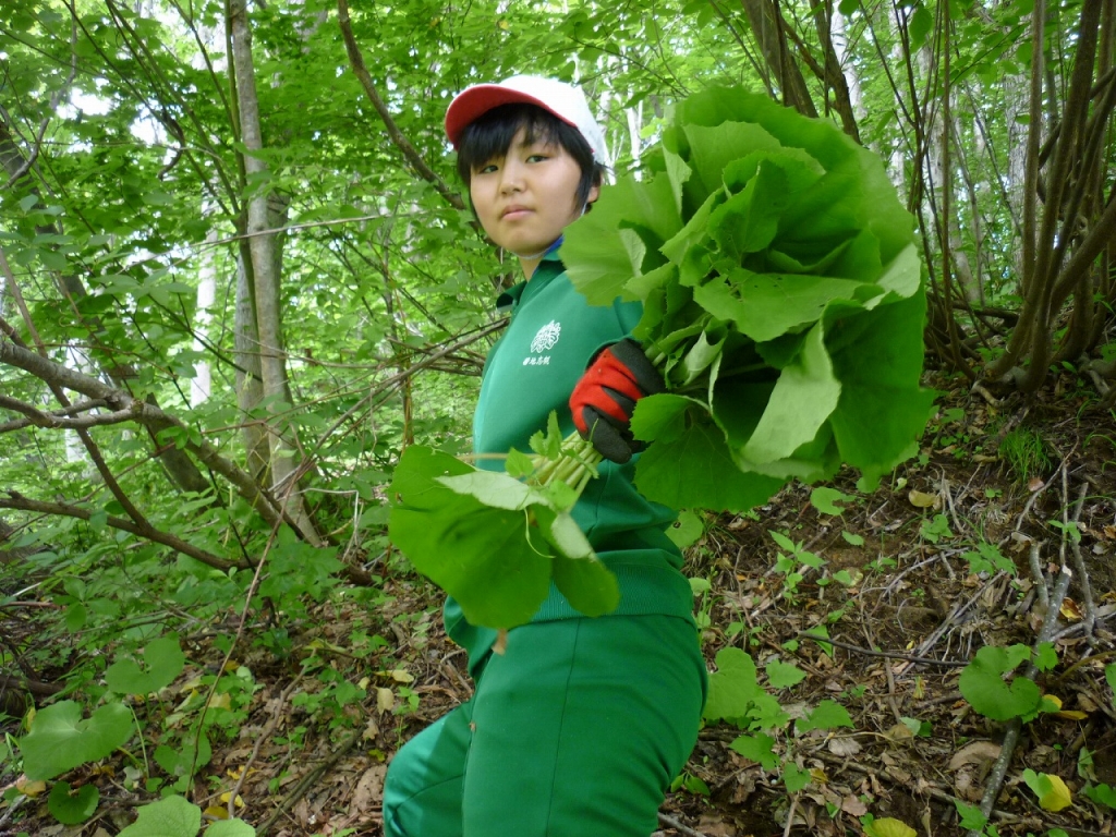 当日は快晴で保護者の方々はもちろん、地域の方々も手分けして多くのふきを採っていただき、生徒・保護者・職員も収穫した合計約750㎏のふきを納品することができました。