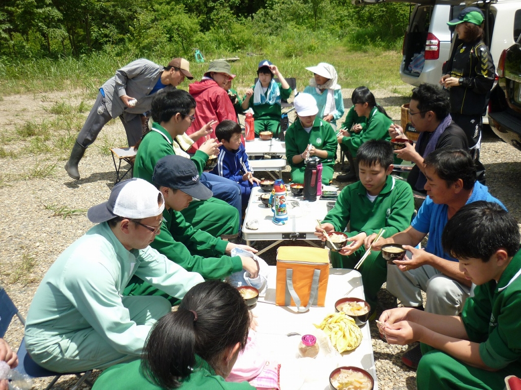 お昼はPTAの方々に作っていただいた豚汁をごちそうになり、和やかな1日となりました。関係者の方々、大変お世話になりました。