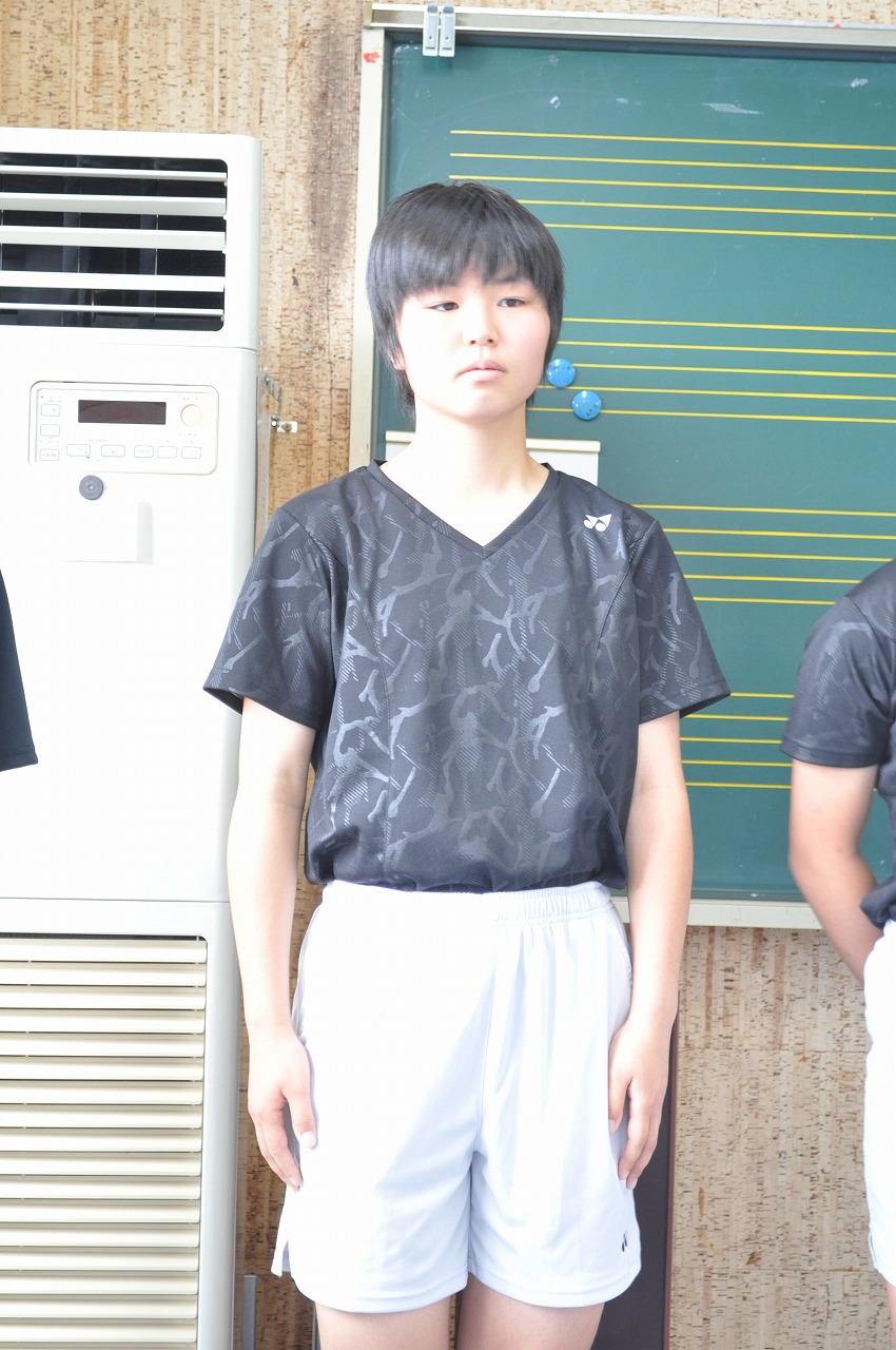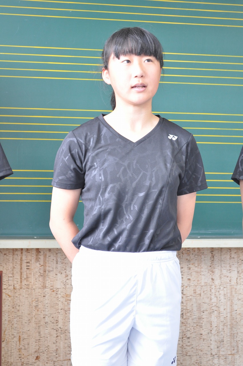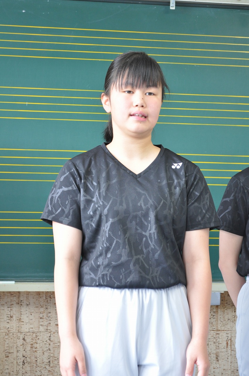 明日の全会津中体連バドミントン大会へ向けて、選手壮行会を行いました。本校は女子団体、女子ダブルスに2ペア、男子シングルスに1人が出場します。壮行会では選手が1人ずつ明日の大会へ向けた抱負を述べ、決意を新たにしました。