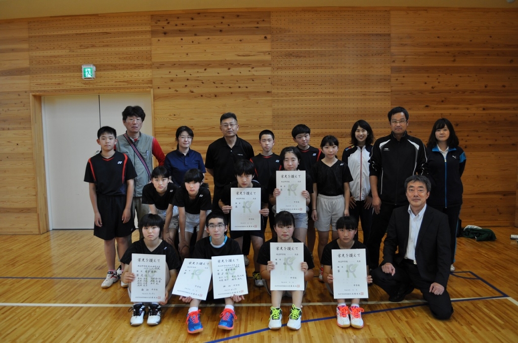 2017年6月8日 16時32分両沼支部中体連総合大会が行われ、バドミントン競技に出場しました。団体は女子が第2位で全会津大会に出場。男子は1年生3名を加えて2年ぶりに出場し、第3位と健闘しました。個人は女子ダブルスが決勝で西山対決となり、鈴木未夢・渡部未蘭ペアが第1位、渡部涼花・渡部美空ペアが第2位で全会津出場を決めました。男子個人シングルスで金子天斗が第3位となり、こちらも全会津出場を決めました。このほか個人戦に出場した生徒も健闘しました。