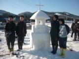 2014年1月29日 17時23分 西山中として、初めて「会津やないづ冬まつり」の雪像作りを1,2年生12名で行ってきました。この活動は、総合学習として行われ、中学生も積極的に柳津町の行事に参加し、柳津町の良さを知り、さらに町全体を盛り上げようとする目的で参加することになりました。美術科の半沢先生の指導のもと、3つの班が協力して、雪像作りを快晴の中、製作することができました。NHKの取材を受け、インタビューに答える生徒もいました。31日に放送するそうです。本番のまつりでたくさんの来場の方に見て頂ければと思います。