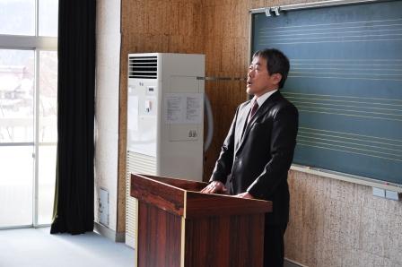 今年度より町の伝統的な行事である七日堂裸詣りに中学生が参加しやすいように、3学期始業式を1月7日としました。以下始業式の様子です。