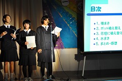 今年度は西山小学校体育館をお借りしての初めての文化祭ということでいろいろとご不便をおかけしましたが、保護者の方々の献身的なご協力、生徒の真剣な活動によって、例年にも増してすばらしい文化祭にすることができたと思います。