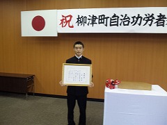 11月3日に挙行された、柳津町自治功労者表彰式において、二瓶大翔君(3年)が顕彰表彰を受賞しました。