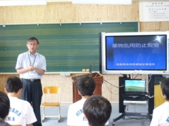 2012年7月17日 17時04分 会津保健所の主任薬剤師の方を講師に、薬物乱用防止教室が開かれました。最近問題となっている、いわゆる脱法ハーブやたばこ、酒などの健康被害や、誘われた時の上手な断り方などについて、分かりやすく話していただきました。みんな、真剣に聞いていました。