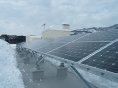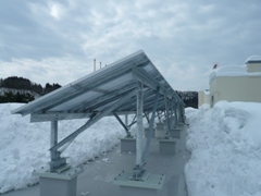 校舎改修工事終了後に始まった太陽光パネル発電工事が完了しました。今年の冬は、例年になく降雪が多く、業者の方々も除雪作業を繰り返しながらの工事となり、大変苦労しておりました。