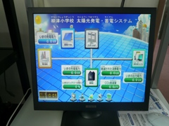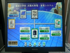 なお、職員室にはパソコンとモニターが設置され、発電電力量、充電電力量、二酸化炭素の削減量、削減された消費電力量などがリアルタイムで表示されます。